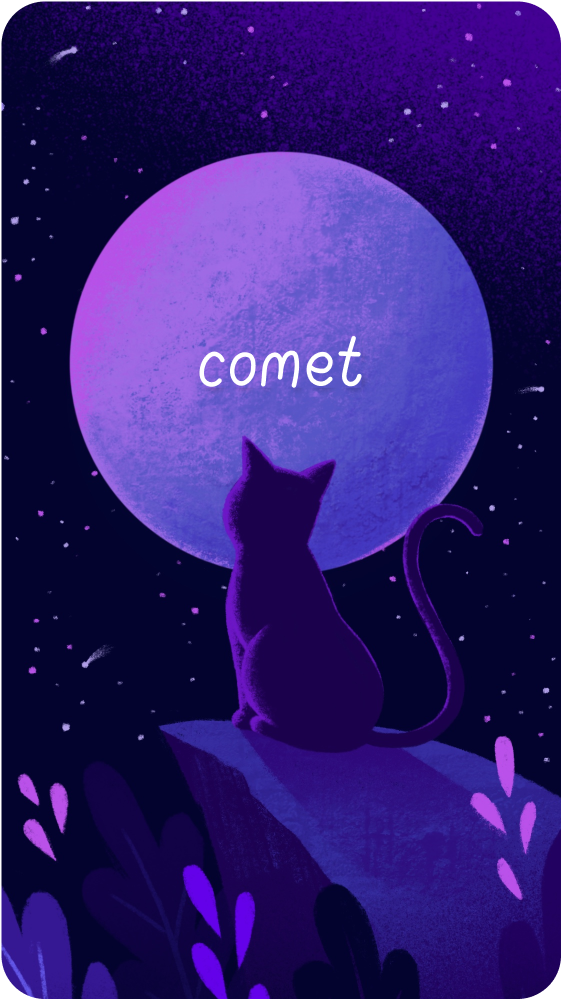 I created a set of space-themed illustrations to creative an immersive world, using hand-drawn textures, gradients, and little whimsical touches. The dark purple palette helped create an intimate, soothing mood.